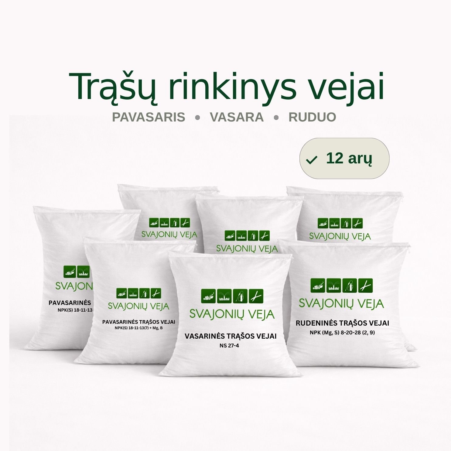 Pilnas trąšų rinkinys tobulai vejai visam tręšimo sezonui!